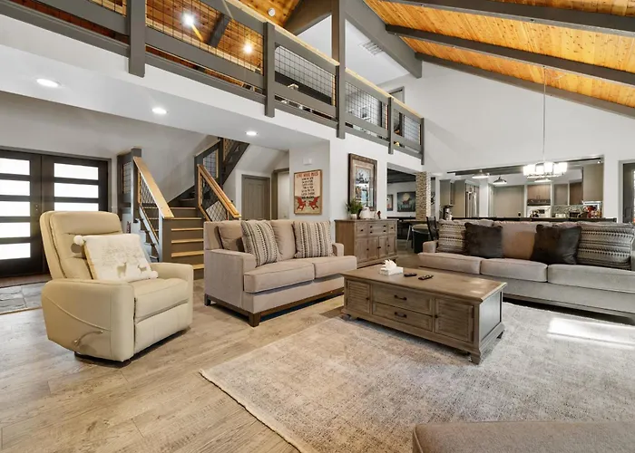 Situated only 9 minutes' walk from Snow Summit Ski Resort, the 5-bedroom Evergreen -Luxury Cabin With A Hot Tub, Game Room & 3 En-Suite Bedrooms! entices guests with water sports activities, snow skiing, and hiking in the area. Featuring a Jacuzzi, the property is about a 10-minute drive from Woodland Trail 1E23.